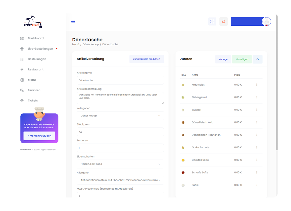 PreiseMit Order Stork kannst du jetzt bequem auf dein eigenes Bestellsystem umsteigen. Durch verschiedene Features ist dein Geschäft im Hand um drehen Online.